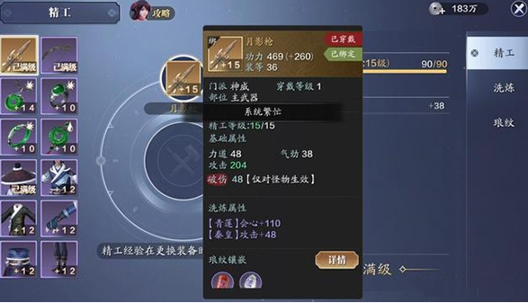 镇派武器相当于更高一个档次的金装,属性加成是要比同等级的金装要高的。如图所示,想要镇派制作的话,那么就需要在新的挑战本金装的这个基础上去进行升级,不过这个升级需要的材料数量可能有点多,需要玩家们准备一百个陨焰之石,俗称大铁,用来作为最基础的材料。