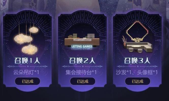 参与方式:通过手机号登录即可参与活动,通过邀请不同的小伙伴,将根据邀请人数解锁不同等级的奖励,包括定制家具(云朵吊灯、集会接待台、沙发)、头像框。