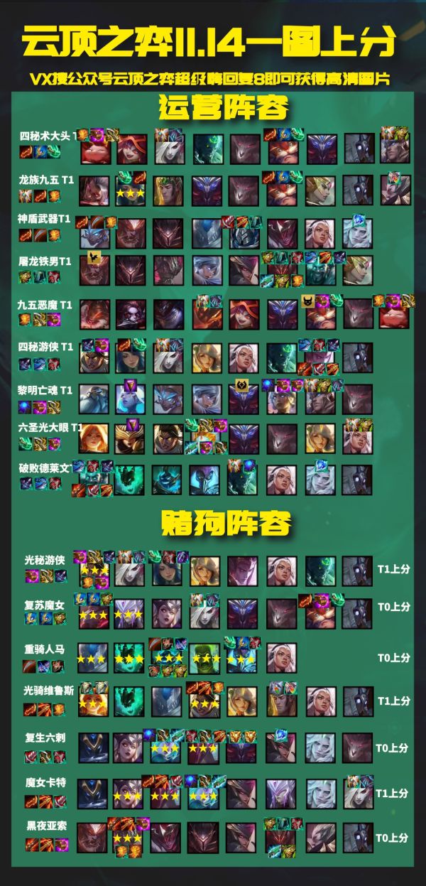 很多水友喜欢问这个版本什么阵容一定能够吃分,现在只要除了天使阵容不要玩以外,所有阵容都能够吃分,赌狗阵容可以选择玩赌吸血鬼!其余的赌狗阵容并不是特别强,因此建议还是以运营为主;