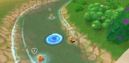 3.到达竞速河流所在地后,可以看到水中有漩涡。