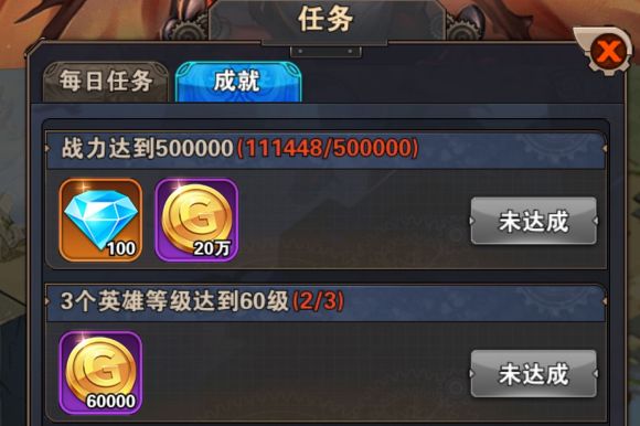 其他的获取钻石的方法就是简单的通过主线任务,大家挑战主线章节的时候,就可以稍微留意一下自己胜利之后的奖励,你会发现都会有少量的钻石,这些钻石也积少成多的话,也是一副不少的奖励。然后就是任务的成就了,当各位每达到一个指定的成就,都会获取大量钻石,比如说战斗力达到50万就可以获得100个钻石以及20万金币。最后要说的是在线奖励也会有钻石奖励呀,大家可不要忘了在游戏的左上角领取,只要在线十分钟左右就可以获得50个钻石,然后以此类推,是一笔不少的钻石奖励。