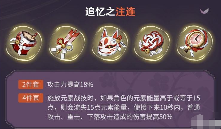 由于原神已经到了1.6版本的末期了,大约一个多礼拜后就要迎来2.0版本了,2.0版本有很多的新内容,其中自然也有两套新的圣遗物,分别的绝缘之旗印以及追忆之注连,那么这套名为追忆之注连的圣遗物的效果怎么样呢?赶紧跟小编一起来了解一下吧。
