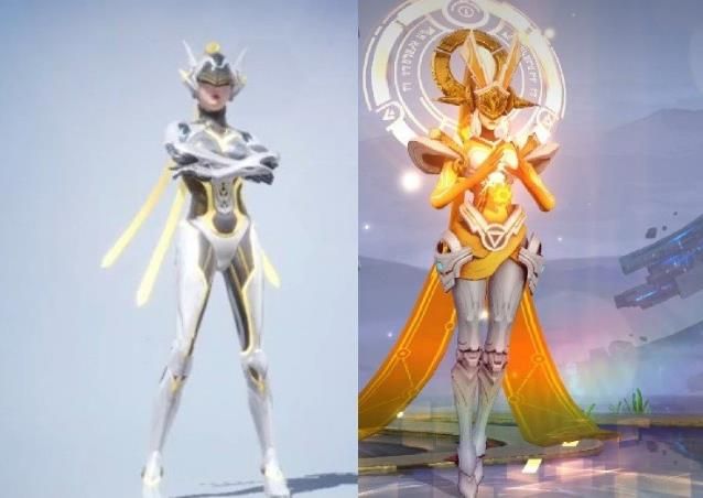 金色的配色和紧身服的设计更搭,同样拥有单马尾的发型!这套时装相较于前两款而言更容易被大众接受,相信上架后一定是销量最高的一套时装!科技感爆棚的同时,细节处理得更好!