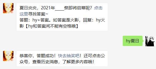 在火影忍者手游的微信公众号里面每天都会给大家推出每日一题,今天自然也是不会例外的。而2021年7月16日的火影忍者手游每日一题的题目是夏日炎炎,2021年_____祭即将启幕呢?如果你想知道这道题目的正确答案的话就赶紧来这里看看本文吧。