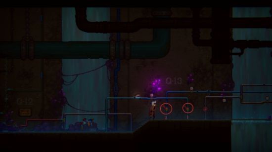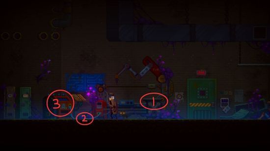 鸟面人会在门关闭前闪过来,继续往右边跑,拉开红色蒸汽扳手。