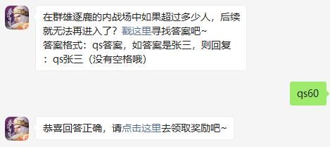 在秦时明月世界的微信每日一题里面每天都会出一道题目,玩家可以通过这个每日一题来获得奖励。而2021年7月20日的秦时明月世界的题目是在群雄逐鹿的内战场中如果超过多少人,后续就无法再进入了?相信大部分的玩家还是对这部分不是很了解的吧,那就快点来看看这篇文章吧。