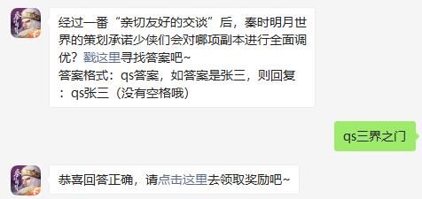 经过一番“亲切友好的交谈”后,秦时明月世界的策划承诺少侠们会对哪项副本进行全面调优?戳这里寻找答案吧~