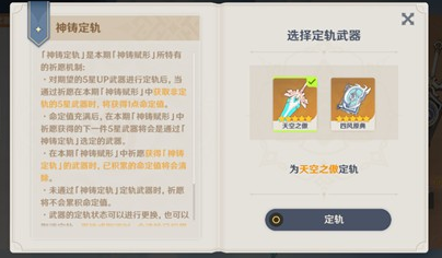 「神铸定轨」是「神铸赋形」所特有的祈愿机制,旅行者可以对期望获取的5星UP武器进行「定轨」。