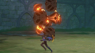 技能应对方式:同上,机关阵列挥舞的时候最好暂停攻击,由于挥舞范围较大,但挥舞动作有一个前摇期,在几秒前摇期迅速远离机关阵列方圆一定距离即可。(挥舞范围比风火**击更大哦,这一点注意一下)