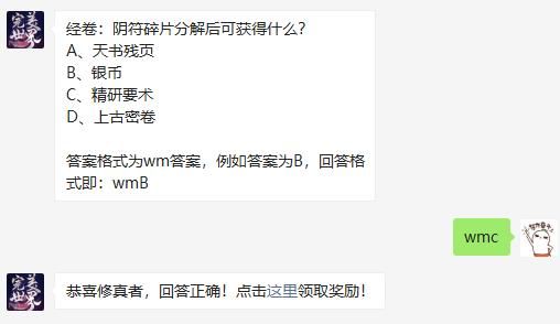 完美世界手游在7月26日又一如既往的推出了新的每日一题,这次道题目是经卷:阴符碎片分解后可获得什么?虽然这道题目对于大部分了解这方面的玩家而言不是问题,但是总归也是有些人不知道答案的。那么就赶紧跟小编一起来了解一下吧。