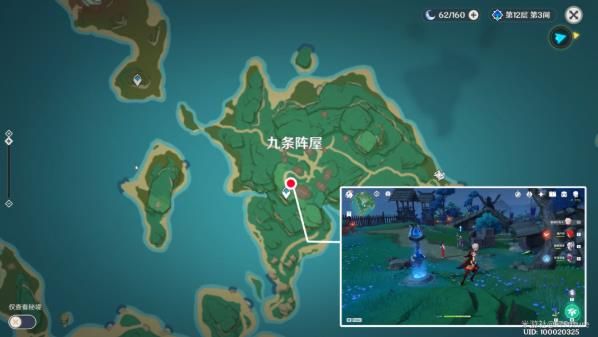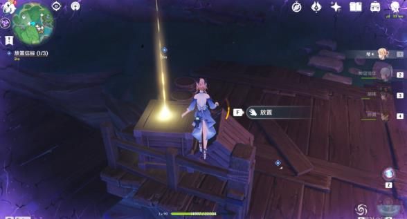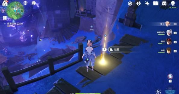 3号点位:3号点位需要先传送到九条阵屋的传送点,之后飞到对面,神居岛崩炮在小岛山体的顶端,在岛下面召唤雷种子,可以使用雷极快速上山。与前两次一致,召唤雷种子后操作大炮,向右移动1次,向上移动2次后发射即可摧毁远处的屏障。