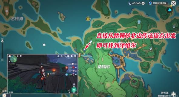 按照任务指引,可以在踏鞴砂的传送点附近找到这位大发明家,具体位置及路线如下图所示,与泽维尔对话即可了解到现在的情况。