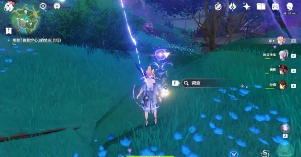2号点位:需要先触碰半空中的雷灵,触碰几次后雷灵落到地面,就会出现调查点。可以利用旁边的雷樱枝条召唤雷种子,使用雷极飞到空中。