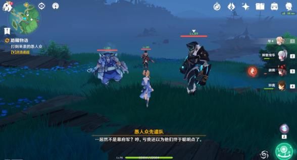 3号点位:3号点位附近有3个愚人众先遣队,分别是冰统重卫士、雷锤前锋军、风拳前锋军,解决掉他们后就会出现调查点。