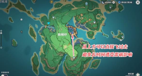 因此建议各位旅行者直接传送到上方的传送点,之后从上方靠近御影炉心后直接飞到目标地点。
