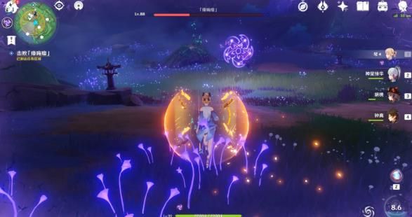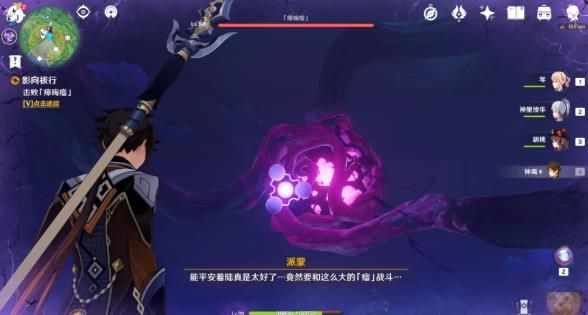 注:提前给各位旅行者提个醒,下面是高雷元素浓度区域,会持续扣除血量,尽管可以在周围召唤雷种子抵挡,但毕竟还要同时与「瘴晦瘤」进行战斗,所以强烈推荐各位携带一名回复类角色保持队伍续航。