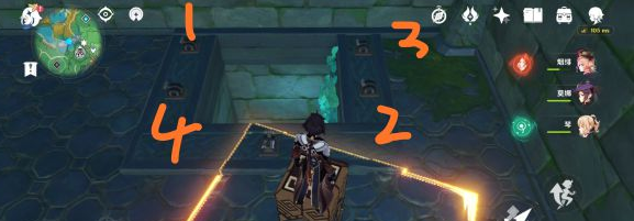 该处共有1座【御引磐座】、6座【雷承之鉴】,若所有装置均保持原位置没有改变,那么调整顺序是:
