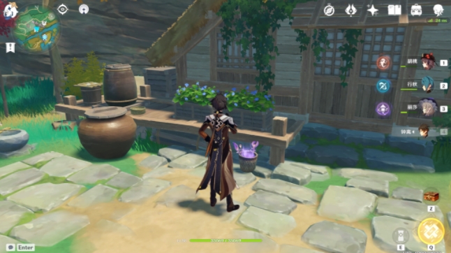 完成世界任务孤岛诊疗谭后,这个叫保本的会叫你到他家花篮放鸣草,就在这(我这是完成了,所以没互动按钮)