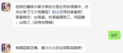 秦时明月世界所出的2021年7月29日的微信每日一题的题目是在明日菌给大家分享的大型社死名场面中,总共分享了几个场景呢?这道题目相对而言还是有那么一点难度的,大家赶紧来这里看看这篇文章吧。