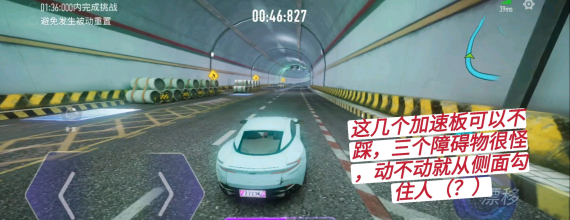 这几个加速板可以不踩,三个障碍物很怪,动不动就从侧面勾住人。