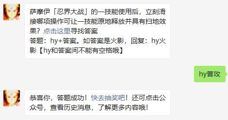 萨摩伊「忍界大战」的一技能使用后,立刻滑接哪项操作可让一技能原地释放并具有扫地效果?点击这里寻找答案