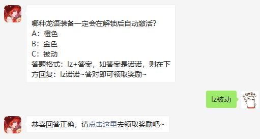 哪种龙语装备一定会在解锁后自动激活?