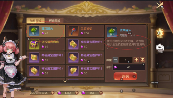 活力值是日常活动活跃度产生的奖励和菠菜罐头购买活力共同组成了游戏人物活力的产生,而活力适用于城堡系统中生产生活游戏消耗道具、家园家具玩法主要的生产耗材,活力作用于城堡玩法中挖矿、钓鱼、采矿、生产食物、家具、炼金中,而产生的相关生活材料均可以通过交易系统进行交易。