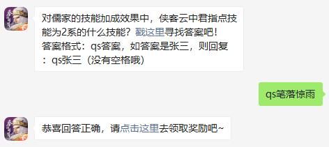 对儒家的技能加成效果中,侠客云中君指点技能为2系的什么技能?戳这里寻找答案吧!