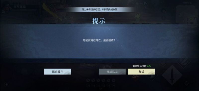 当我们被BOSS击败之后,会进入复活界面,点击复活即可重新加入战斗,BOSS血量不变,我方恢复至满状态。