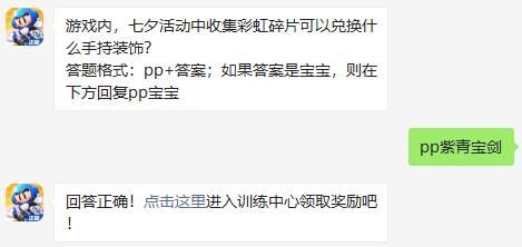 游戏内,七夕活动中收集彩虹碎片可以兑换什么手持装饰?