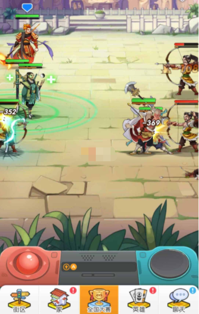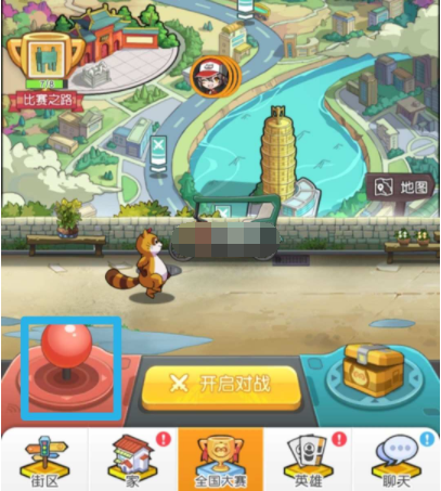 1.小伙伴们首先点击【全国大赛】,进入全国大赛的主界面,点击界面左下方的红色摇杆按钮;