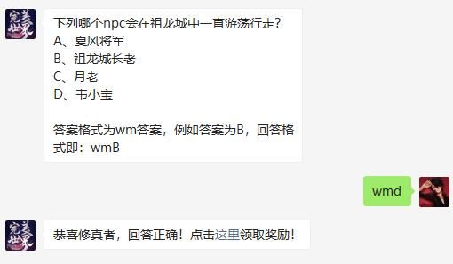 完美世界手游在8月14日给各位玩家带来了一道题目,这道题目是下列哪个npc会在祖龙城中一直游荡行走?虽然这道题目很多的玩家都知道答案,但是依旧有些玩家不知道吧。那么就赶紧来58免费资源网看看这篇文章吧。