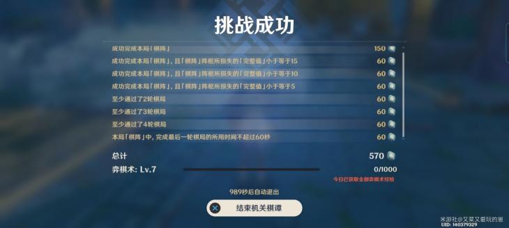 弈棋术的等级是机关棋谭里最重要的机制,关乎着棋手是否能挑战更高难度的机关棋谭,但与1.0机关棋谭不同的是,2.0并不需要利用点数升级机关,而是依靠多次游玩,多完成挑战对弈棋术等级的提升来强化棋手的各项能力。