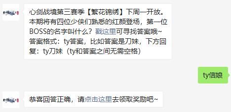 心剑战境第三赛季【繁花锦绣】下周一开放。本期将有四位少侠们熟悉的红颜登场,第一位BOSS的名字叫什么?戳这里可寻找答案哦~