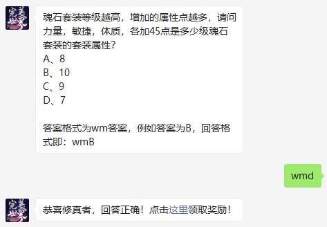 魂石套装等级越高,增加的属性点越多,请问力量,敏捷,体质,各加45点是多少级魂石套装的套装属性?