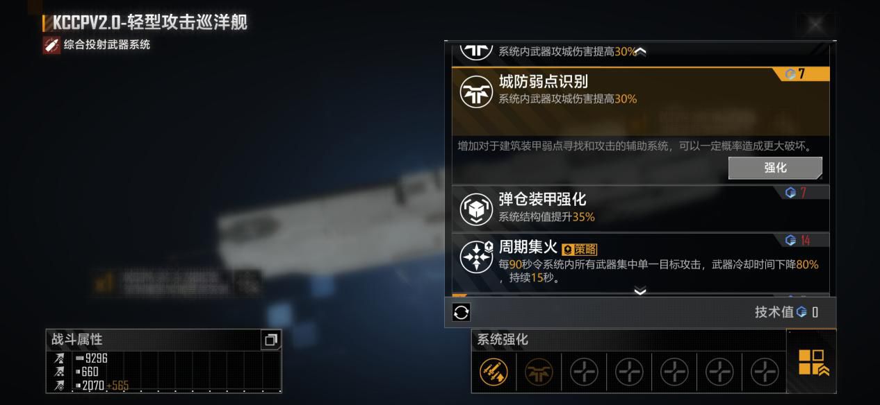 综合投射武器系统方面我个人推荐优先加点【周期集火】和【城防弱点识别】。