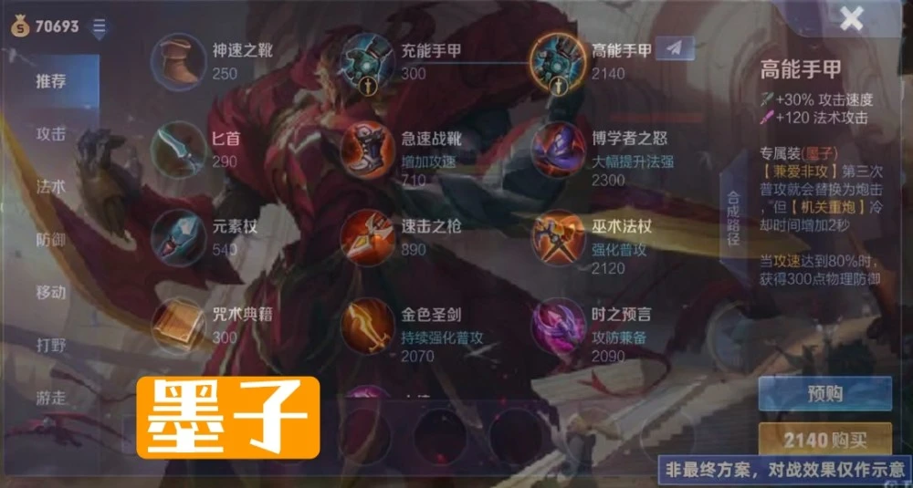 这件装备对墨子而言,不仅仅是改变了属性,同时还改变了分路玩法,让墨子这个英雄不再依赖2技能远程消耗,使其可以走攻速流,真正意义上的变成上路战士!