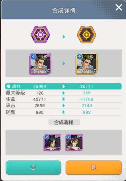 需要合成紫色精英武将的时候注意一下:只有同角色的紫色卡才能合成紫色精英武将,也就是说要放两张一样的卡!比如这里我就合成了马麟!我们合成了一张紫色精英卡(上图的马麟),接下来我们要合成金色史诗卡!这时候合成就很简单了,金色卡加上你的紫色精英卡!