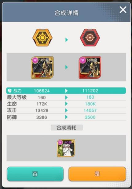 合成彩色(神话)武将需要本体卡8张加上蓝色狗粮180张