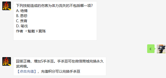 三国杀每一天都会在微信公众号里面给大家带来全新的每日问题,今天8月23日自然也不会例外。而今天的题目则是下列技能造成的伤害为体力流失的不包括哪一项如果你想要知道这道题目的答案是什么的话就赶紧来这里看看这篇文章吧。