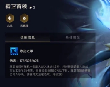 3、霜卫首领在50%血量以下时,则可以把自身冰封,效果是不能被敌人作为目标2秒,而且也可以对周围的敌方造成较大的伤害,可以升到3星培养作为主C。