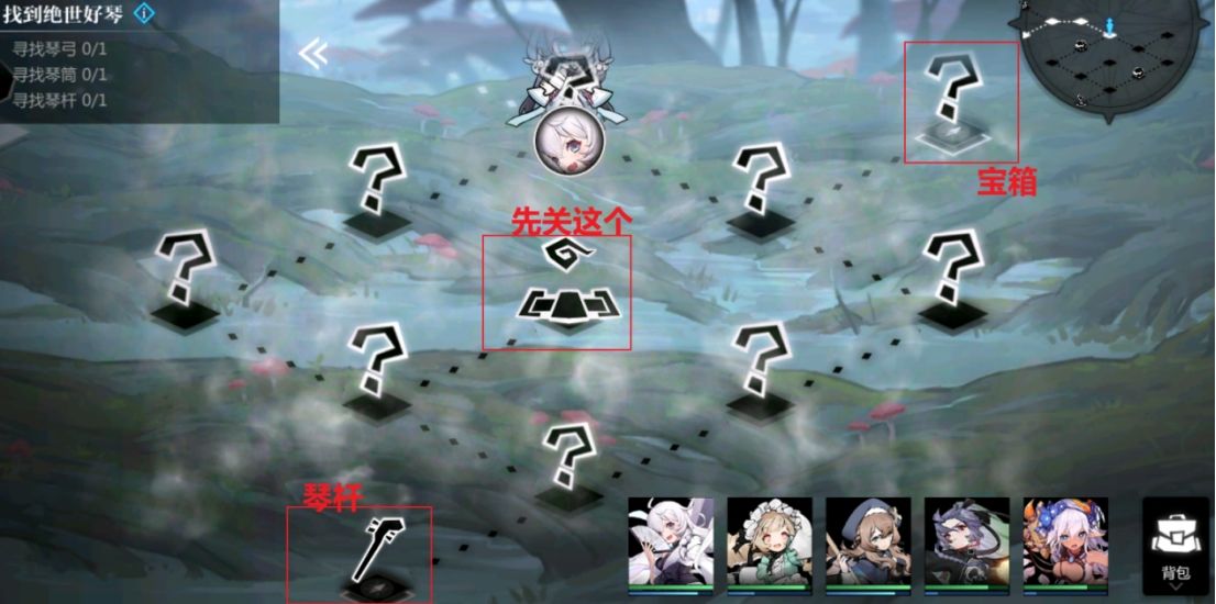 3.琴杆:投骰子(大于等于10)减少大雾里的怪物数量,只能减少一次(玩一次扣自己队伍5%的生命),点数达到就成功,达不到就白扣5%的生命,但是失败了还可以再试(纯看运气)先到祭坛关大雾,然后拿宝箱和琴杆(拿到琴杆可以增加队伍10%的生命)然后传送回去。