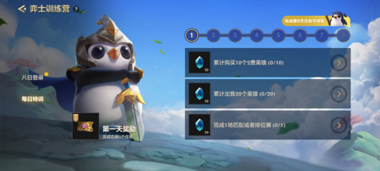 此外,【弈士训练营】还包含每日特训活动,每日特训任务随游戏登录天数逐渐解锁。