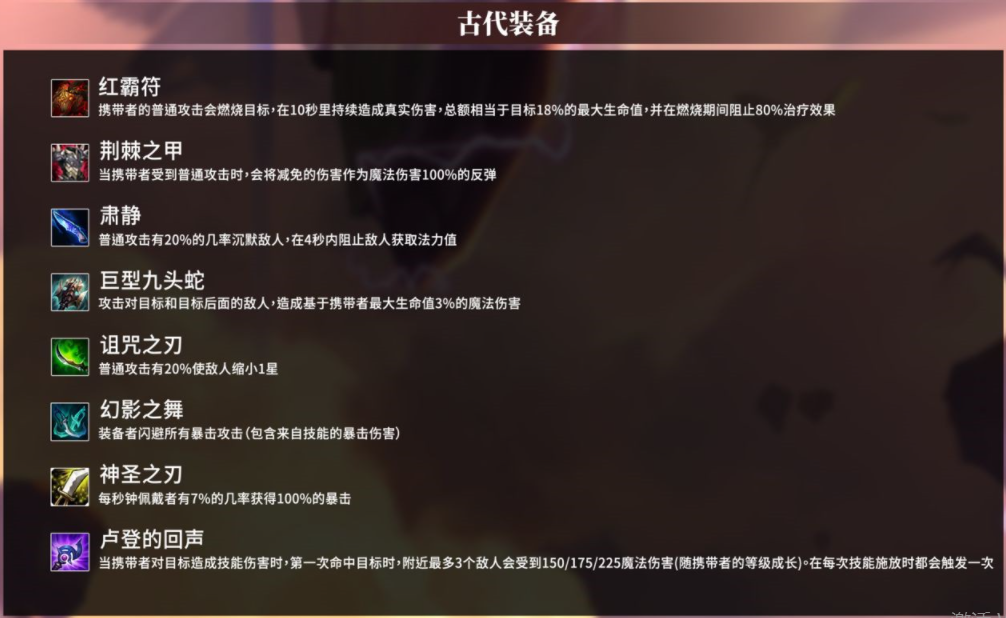 古代装备图鉴如下图,都是无法直接合成获得的。