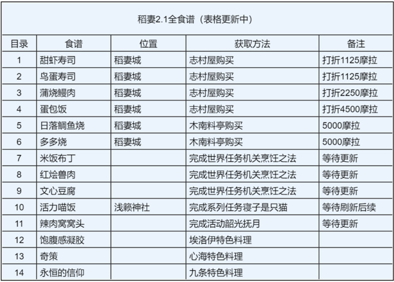 原神更新2.1版本后,又新增加了11份奇奇怪怪的食谱,有的食谱是可以直接购买,有的需要完成任务或者活动才能获得,以下是2.1稻妻新增食谱获取方法介绍。
