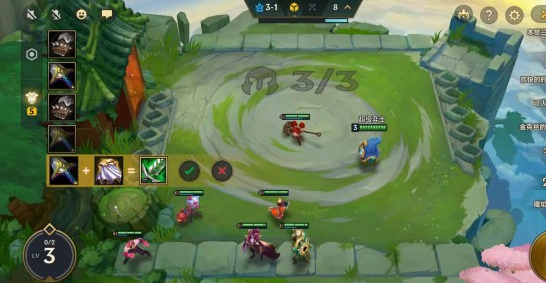 3、合成英雄:当英雄合成时,身上的成型装备大于4个,这些装备就会自动脱落,供我们重新进行分配了。需要注意的是带装备的英雄不要在战场上,不然装备会合并过去。