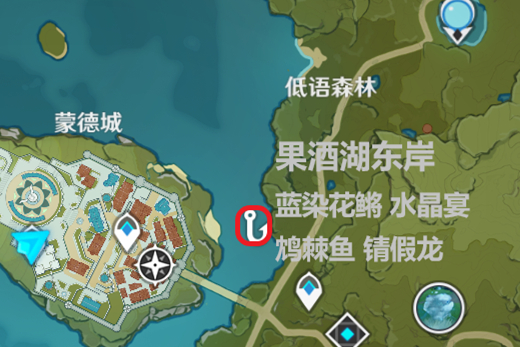 蒙德钓鱼协会在蒙德城右上角湖边,能兑换三种鱼饵配方和蒙德鱼竿