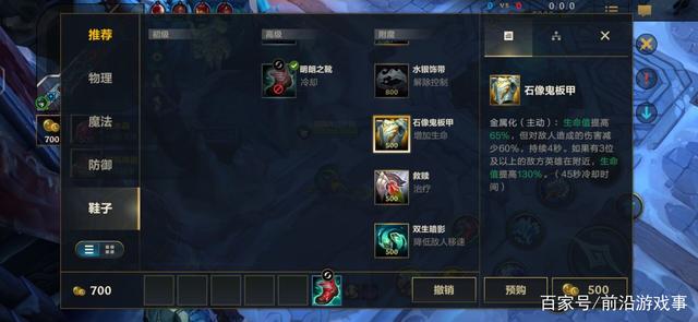 因为开局我们拥有1700金币,而比较便宜的主动装备只需要1500金币,这时候我们就可以来一个骚操作,出门就直接购买主动装备,比如正义荣耀提升群体移速,原型腰带给自己增加一段位移与伤害,石像鬼板甲让自己短时间变得更肉,救赎为队友提供治疗,这些装备都可以选择。