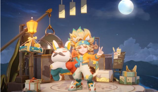 服装设计上很有节日的气氛和属性,以复古国潮的感受为主,融合了浓浓的中秋节的属性,包括月饼、兔子还有桂花等等,节日气氛很浓厚。其核心武器也变成了中秋吉祥兔的神仙的手套。