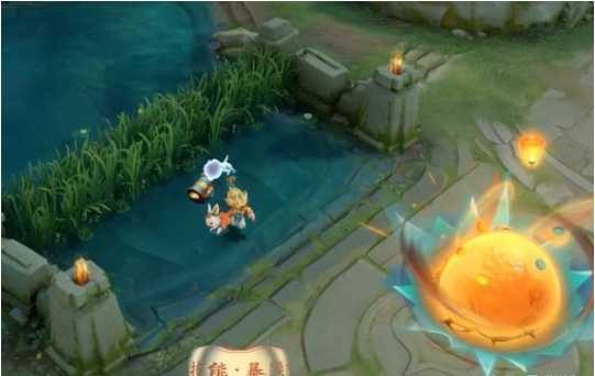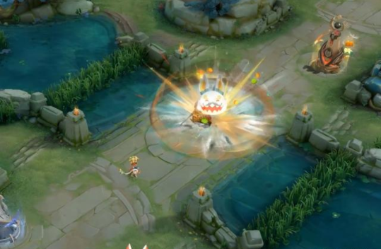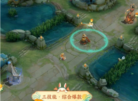 一技能扔出来的兔子炸弹,遇到敌人的时候会有半个月球的特效,在炸开之后会迸发出一个月饼。